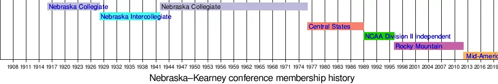| Past conferences | Nebraska College Athletic Conference(1916–1927,1943–1975) NIAA (1928–1942) CSIC (1976–1989) RMAC (1996–2011) |