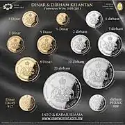 The Kelantanese dinar is a currency issued by the Government of the Malaysian state of Kelantan, which purportedly is in conformance with the concept of the Islamic gold dinar. The Kelantanese dinar is available in the form of coins of several denominations. These coins were first struck in 2006 by Mariwasa Kraftangan of Kuala Kangsar, Perak, a local producer of souvenirs and replicas of objects of art and culture, and launched by the state of Kelantan on 20 September 2006. The Government of Kelantan had suggested that the coins had the status of legal tender,[1] and the state-issued dinar sold out quickly, with many buyers seeing the gold dinar as a better choice than fiat money.[2]