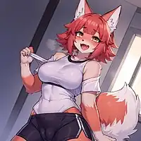 Anthropomorphic fox character with animal elements such as muzzle and fur