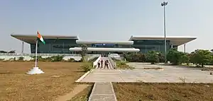 In August 2013, the central government announced that the Khajuraho Airport would receive a new terminal.[7] Built at a cost of about ₹90 crore (US$11 million), the building was inaugurated on 23 January 2016 with officials from the state and union governments in attendance.[8][9]