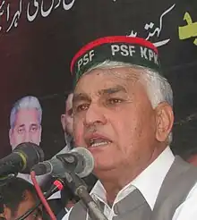 - ↑ Report, Bureau (26 March 2013). "PPP names candidates for Khyber Pakhtunkhwa". DAWN.COM. Retrieved 13 December 2017.