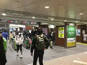 In fiscal 2019, the JR station was used by an average of 141,849 passengers daily (boarding passengers only) making it the 22nd busiest JR East station.[6] Over the same fiscal year, the Keio station was used by an average of 146,901 passengers daily (exiting and entering passengers).[7]
