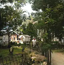 In June 1939, a series of animal postage stamps was issued, with the proceeds amounting to Fr.300,000 to benefit the zoo.[11] On its fifth anniversary, the zoo held an exhibition attended by Prime Minister Hubert Pierlot and a soirée at the restaurant.[12] In August 1954, the zoo received its first Okapi, the elusive creature discovered in the Ituri Forest in the northeastern part of the Democratic Republic of the Congo. The Zoo also featured a Chimpanzee that mooched and smoked cigarettes cadged from visitors. King Baudouin of Belgium visited the zoo in May 1955 during his successful tour of the colony.[13][14][15] By 1956, the zoo's fortunes began to decline, and controversies arose regarding the possibility of closure, with a portion of the complex being ceded to the nearby Kinshasa General Hospital.[16] The zoo's cultural center, with a seating capacity of five hundred, served as a venue for meetings and conferences, complemented by catering from the Zoo Restaurant.[16][10]