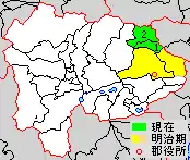 * yellow - areas formerly within the district borders during the early Meiji period