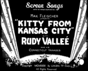 Kitty from Kansas City is a 1931 animated short film which is presented by Max Fleischer[1] and was originally released by Paramount Pictures.[2] The film, with features Betty Boop as she attempts to comically get to Rudy Valley,[1] features a sing-along of the song "Kitty From Kansas City",[1] a song that Vallee released on vinyl via the Victor record label.[3]