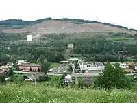 A prominent landmark in Klęczany is the highly visible rock mine which was opened in 1912, right after World War II, and continues to operate to this day.[2]