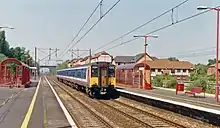Knebworth railway station serves the village of Knebworth in Hertfordshire, England. It is 25 miles 3 chains (25.04 miles, 40.29 km) from London King's Cross on the East Coast Main Line.[1] Train services are currently provided by Great Northern.