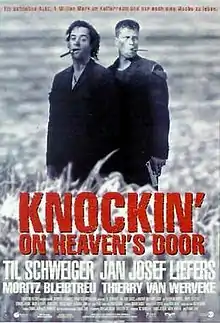 Knockin' on Heaven's Door is a 1997 German crime tragicomedy film[2] by Thomas Jahn, starring Til Schweiger, Moritz Bleibtreu, Jan Josef Liefers and Rutger Hauer. Its name derives from the Bob Dylan song which is also on the film's soundtrack. It was entered into the 20th Moscow International Film Festival where Til Schweiger won the Silver St. George for Best Actor.[3]