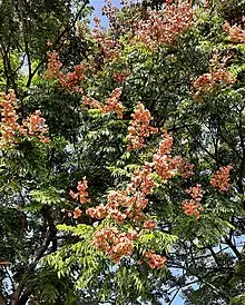 Koelreuteria elegans, more commonly known as flamegold rain tree,[1] is a deciduous tree 15–17 metres tall. There are currently two subspecies under this taxa, i.e., K. elegans ssp. elegans, which is endemic to Fiji, and K. elegans ssp. formosana, which is endemic to Taiwan.[2][3][4] The subspecies formosana, commonly known as Taiwanese golden rain tree, is widely grown throughout the tropics and sub-tropical parts of the world as a street tree.