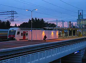 Koivukylä railway station (Finnish: Koivukylän rautatieasema; Swedish: Björkby station) is a Helsinki commuter rail station located in the district of Koivukylä in the city of Vantaa, Finland. It is located approximately 19 kilometres (12 mi) from Helsinki Central railway station.
