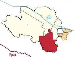 Kopetdag District (Turkmen: Köpetdag etraby) is a borough of Aşgabat in Turkmenistan. As a borough, it is headed by a presidentially appointed mayor (Turkmen: häkim). [1][2][3][4][5][6][7][8][9][10][11][12][13][14][15]