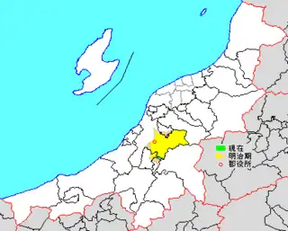 Map showing original extent of Koshi District in Niigata Prefecture: