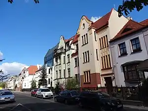 One of the oldest house in the street, originally at Schröttersdorf 3b. It first belonged to Adalbert Biedermann, a teacher for deaf children[15] giving language lessons (German: Kurse für spracheidende), as were his neighbours at Nr.8 and 12. Adalbert had been living previously at Hempelstraße 17 (now 3rd May street). He stayed at Krakowska 10 till the end of WWII. In the 1920s, Dr. Teodor Brandowski, working at the Municipal Library (Polish: Miejska Biblioteka),[13] established here.