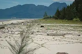 ![]() View of the beach and pine habitat towards Mt. Santubong | |