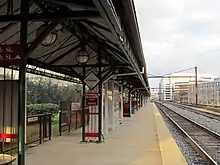 The VRE platform is located on the north side of the three-track RF&P Subdivision, which is elevated above Virginia Avenue SW between 6th Street and 7th Street. Stairs lead to the station from 6th Street and 7th Street; a ramp leads to the station from C Street west of 7th Street.[9] Most Amtrak intercity trains do not stop at L'Enfant, though several Northeast Regional trains stop for VRE passengers only as part of a ticket cross-honoring agreement.[11]