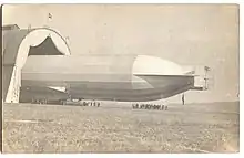 A real photo postcard showing the LZ 10 Schwaben being pulled out of a hangar