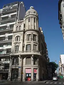 The building is located in the corner of Laprida St. and Córdoba St., at the edge of the downtown area, in front of Plaza 25 de Mayo. It was built in 1907, and commissioned by Camilo Guani, owner and founder of the financial institution that bore the name of Bola de Nieve; to a French-born architect by the name of Édouard Le Monnier, this mutual fund company had the tallest building in the city at the time it was built.