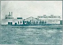 La Cienega/Jefferson station was once named Sentous station when it was on the Air Line. The Louis Sentous meat packing facility was nearby; they used the Air Line to ship meat to downtown Los Angeles.[5] The Sentous Yard maintenance facility persisted long after the passenger station was gone; according to one history, it occupied "a portion of the right-of-way directly east of La Cienega, and spur tracks and sidings exist directly west of La Cienega".[6]