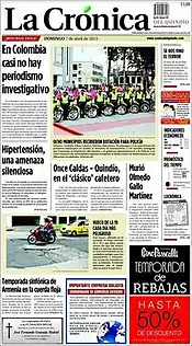- ↑ "La Crónica del Quindío" (PDF) (in Spanish). Bogotá: Colombian Association of Newspaper and News Media Publishers. Retrieved 25 April 2013.