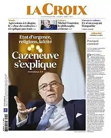 ![]() Front page of La Croix on 20 January 2016. The first edition to use the new orange logo and theme. | |
