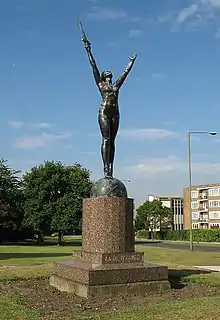 - ↑ "'Gangrene Gertie' is now 'sun tanned'!. La Delivrance, a war memorial beside the Finchley Road, which has for years been known to local residents as 'Gangrene Gertie' owing to the corrosion of the bronze of which the statue is made, is now restored", Europeana, retrieved 13 November 2015