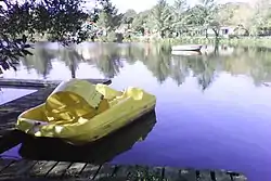 La Récré Des 3 Curés is situated around a lake, and includes multiple rides, playgrounds, slides, games, 3000 m2 of indoor games, and two roller coasters. In addition, the park includes a 4-star campground.[3]