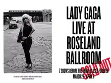 Lady Gaga Live at Roseland Ballroom was the first concert residency by American singer Lady Gaga. Performed at the Roseland Ballroom in Manhattan, New York, the residency began on March 28 and concluded on April 7, 2014, after completing seven shows. It was the final event hosted by the venue after it was announced that it was being closed down and being replaced with a 42-story skyscraper. Gaga revealed that Roseland was the only venue in New York City that she had never played, although she had visited there previously to watch shows. A poster announcing the event was released, showing an old image of Gaga taken before the time she became successful as a recording artist.