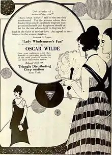Lady Windermere's Fan is a 1916 British silent comedy film directed by Fred Paul and starring Milton Rosmer, Netta Westcott and Nigel Playfair.[1] It was the first film adaptation of Oscar Wilde's 1892 play Lady Windermere's Fan. A print of the film still exists[2] and it has been released on DVD by the British Film Institute.