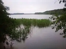 Šakarvai Lake is in the Ignalina district of eastern Lithuania, Aukštaitija National Park, about 2.5 kilometres (1.6 mi) southwest of Palūšė village. The lake connects with Lake Lūšiai and Lake Žeimenys.