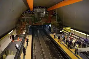 Las Heras Station is a station on Line H of the Buenos Aires Underground, opened in 2015.[1] It is located near the University of Buenos Aires faculty of Engineering and the Recoleta Cemetery. The station was opened on 18 December 2015 as the northern terminus of the extension of the line from Corrientes. On 17 May 2018 the line was extended to Facultad de Derecho.[2]