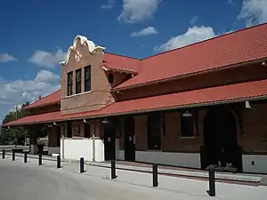 The Atchison, Topeka and Santa Fe Railroad arrived at Las Vegas from the north on July 4, 1879.[9] To maintain control of development rights, it established a station and related development one mile (1.6 km) east of the Plaza, creating a separate, rival New Town, as occurred elsewhere in the Old West. The same competing development occurred in Albuquerque, for instance. During the railroad era Las Vegas boomed, quickly becoming one of the largest cities in the American Southwest. Turn-of-the-century Las Vegas featured all the modern amenities, including an electric street railway, the "Duncan Opera House" at the northeast corner of 6th Street and Douglas Avenue, a Carnegie library, the Castañeda Hotel (a major Harvey House), and the New Mexico Normal School (now New Mexico Highlands University). Since the decline and restructuring of the railroad industry began in the 1950s, the city's population has remained relatively constant. Although the two towns have been combined, separate school districts have been maintained (Las Vegas City Schools and West Las Vegas School District).