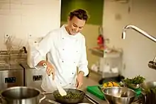 While studying at university, she came up with the idea to cook and promote vegan food in her restaurant "Vegan Kitchen and Bakery". Opening its doors in 2010, it was the first vegan restaurant in Switzerland.[13][14][15] She later sold the restaurant to Soyana, a Swiss company selling organic vegan food.[16] Between 2015 and 2018, she worked with the Klubschule Migros to realize a vegan cooking course.[4] During the COVID-19 lockdowns, Wildbolz was involved in revamping the concept of the Zürich restaurant Maison Blunt, re-branding it to Maison Raison with a vegan menu and organic supplies. Furthermore, she coached the kitchen team and initially worked herself as head chef.[17][18][19] The restaurant was sold to Zineb Hattab in September 2021 and is now operating under the name Dar.[20] Within the scope of her entrepreneurial activities, she runs a catering business called Future Cuisine, gives cooking classes and works as a consultant and keynote speaker for plant-based nutrition. Furthermore, she has founded the startup company PLANTBOX, a cooking box that aims to familiarise people with plant-based cooking and nutrition at home.[4][21] In 2021, her vegan cake dessert range KUBO was launched, a frozen dessert range developed for restaurant businesses.[9][8] As of April 2022, Wildbolz has released two vegan cookbooks, contributed to others and is working on her next publication about the future of nutrition.[22] Additionally, she works as an expert and teacher at the Neuro Culinary Center in Vitznau and as Creative director for Soil to Soul.[23][24] Wildbolz's key topics revolve around the question of feeding the growing global population sensibly and sustainably, and the future of food. She has been featured in various media appearances.[5][25] She works as an advisor to companies and helps them adopting a sustainable approach.[26][11][1]