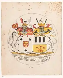 Arms of alliance of Storm van 's Gravesande (left) and his wife Lumea van Bercheyck (right)