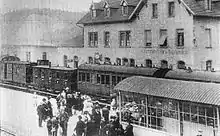 In 1913 a wooden hut was built between the signal box and the track supervisor's office (Bahnmeisterei). A year later, at the outbreak of the First World War, the military authorities operated troop trains over the line every 90 minutes. It was said that a lavatory with a capacity for 100 people had been built behind the hut for this operation.[13]