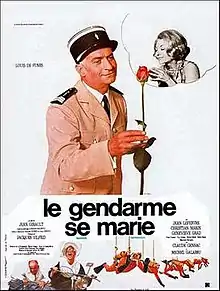 The Gendarme Gets Married (French: Le gendarme se marie) is the third installment of the Gendarmes series, starring again Louis de Funès and one more time Geneviève Grad as his daughter.[2] This comedy film succeeds Gendarme in New York and is followed by three further installments.