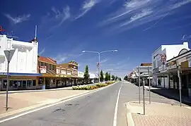 Leeton is a town located in the Riverina region of New South Wales, Australia. Leeton is situated in the Murrumbidgee Irrigation Area.[2] It is the administrative centre of the Leeton Shire Council local government area, which includes neighbouring suburbs, towns and localities such as Yanco, Wamoon, Whitton, Gogeldrie, Stanbridge and Murrami. Situated in one of the most productive farming regions in the state, the town was designed by Walter Burley Griffin and purpose-built for the irrigation schemes announced by the New South Wales government in the early 20th century.[2][3][4] The Leeton Shire possesses numerous citrus, rice, cotton, grape, walnut and wheat farms. Leeton is known as Australia's Rice Capital, as well as The Heart of SunRice Country, as it is home to the headquarters of SunRice corporation, one of Australia's largest food exporters.[5][6] Other industry includes Arnott's Biscuits (previously Freedom Foods),[7] the Daily Drinks Company, JBS Australia, Webster Limited,[8] and Murrumbidgee Irrigation Limited.[9] Tony Reneker is the current mayor of Leeton.[10]