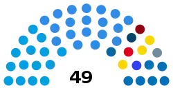 It comprises 49 legislators, elected in three multi-member electoral sections through proportional representation every four years. Elections employ the D'Hondt system.[1] The electoral sections do not correspond to the 17 departments of Tucumán, but rather group different departments together.[2]