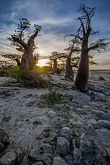 Lekhubu Island is a rock outcrop in Botswana.[1] It is located in the Southern campus of the large natural topographic depression within the Makgadikgadi region of Botswana called the Sua Pan, which is the largest pan in Botswana.[2] It is a two billion year old granite rock island, crescent shaped and is about one kilometre long, its slopes are littered with fossil beaches of rounded pebbles, an indication of the prehistoric lake's former water levels. Lukhubu is referred to as an island because it is surrounded by a sea of white salt.[3]