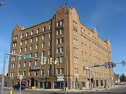 Leland Hotel, also known as the Leland Motor Inn, is a historic hotel building located at Richmond, Wayne County, Indiana. It was built in 1928, and is a seven-story, U-shaped, Mission Revival style reinforced concrete building sheathed in light brown brick dwelling. The building was modernized in the mid-1960s and removed or covered many of the original details. It is the tallest building in Richmond.[2]:2–3