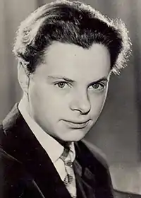 He was a supporting actor in Vasyok Trubachyov i yego tovarishchi (1955) and the romance Otryad Trubachyova srazhayetsya (1957).[8] He played Fedul VI in Fire, Water, and Brass Pipes (1968).[9][10] He played the part of Dobchinsky in the comedy Incognito from St. Petersburg (1977).[11] In 1979 he acted in Moscow Does Not Believe in Tears, and A Few Days from the Life of I. I. Oblomov. In Moscow Does Not Believe in Tears he appears in cameo as himself, as part of the setting for the character Rudolf (Yuri Vasilyev) who is a television cameraman and first lover of the protagonist Ekaterina (Vera Alentova). Kharitonov was at that time ubiquitous on Soviet television, and therefore represented the contemporary celebrity media zeitgeist. This cameo part is not unimportant, as director Vladimir Menshov said: "The uniqueness of the movie Moscow does not believe in tears lies in the fact that there are no bit parts."[3][12][13]