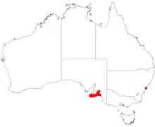 This leucopogon grows in forest, mallee scrub and heath, sometimes near the edge of swamps and in endemic to the southern Mount Lofty Ranges and Kangaroo Island in South Australia.[2]