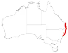 This leucopogon mainly grows in woodland and open forest in near-coastal of south-eastern Queensland and in New South Wales, as far south as Nelson Bay.[2]