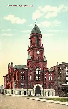 Lewiston City Hall is located at 27 Pine Street (corner of Pine and Park Streets) in downtown Lewiston, Maine. Built in 1892, to a design by John Calvin Spofford, it is a distinctive regional example of Baroque Revival architecture. It is the city's second city hall, the first succumbing to fire in 1890. The building was listed on the National Register of Historic Places in 1976.[1]