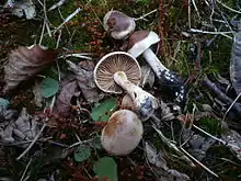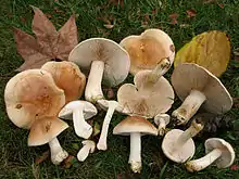 This is a list of species in the agaric genus Hebeloma. A 2008 estimate placed about 150 in the genus.[1] As of January 2016, Index Fungorum accepts 321 species in Hebeloma:[2]. A major revision of the European species was undertaken in Hebeloma in the Fungi Europaei series,[3] published in March 2016. It concluded that there were 84 species of Hebeloma in Europe. As of November 2022, hebeloma.org [4] lists over 500 names used throughout history, of which 135 are said to be current, valid (non-synonymous) names.