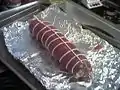 A pork tenderloin filled with spicy tomato puree, spinach, etc. | |