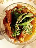 | Karela bharta | a bitter gourd or melon dish | Usually vegetarian | |