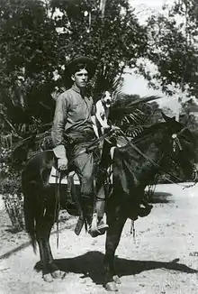 Emil Holmdahl and his pet dog during the campaign against Zapata. c 1913