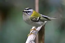 The kinglets, also called crests, are a small group of birds often included in the Old World warblers, but frequently given family status because they also resemble the titmice.