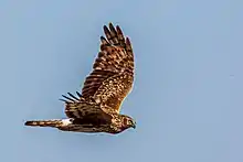 Bustards are large terrestrial birds mainly associated with dry open country and steppes in the Old World. They are omnivorous and nest on the ground. They walk steadily on strong legs and big toes, pecking for food as they go. They have long broad wings with "fingered" wingtips and striking patterns in flight. Many have interesting mating displays.
