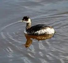 Grebes are small to medium-large freshwater diving birds. They have lobed toes and are excellent swimmers and divers. However, they have their feet placed far back on the body, making them quite ungainly on land.